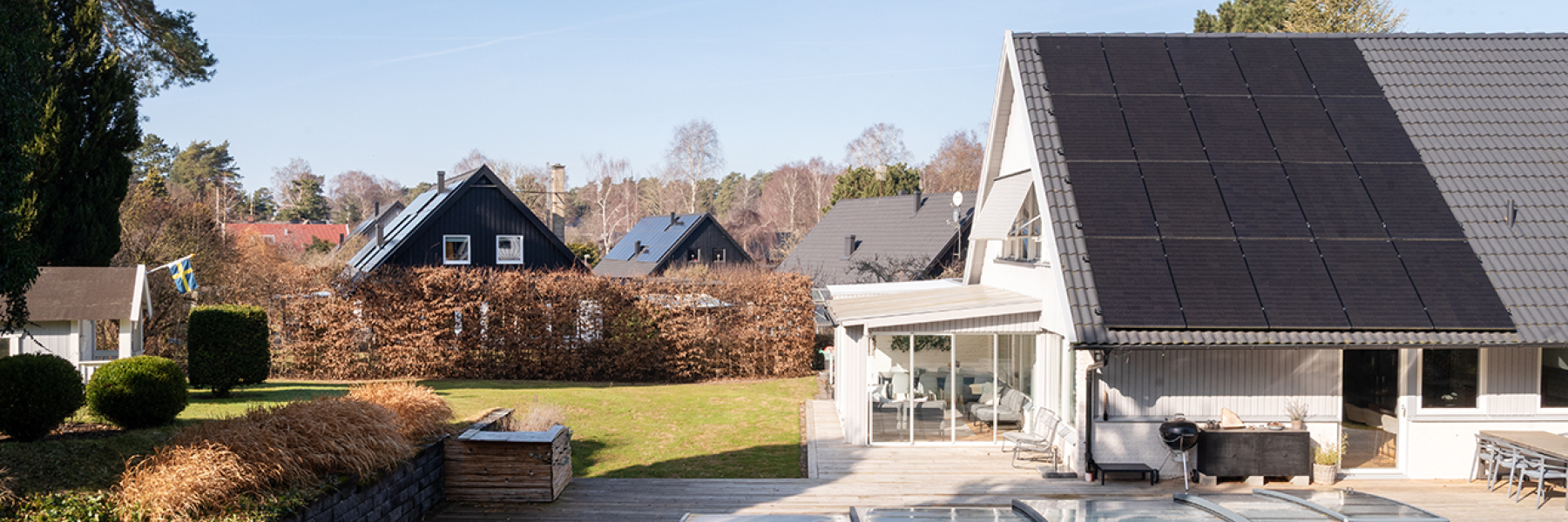 Här har nuvarande ägare på ett smakfullt sätt förvandlat både bostad och trädgård till en oas för familjen med behov av stora ytor, många rum och moderna, funktionella lösningar.